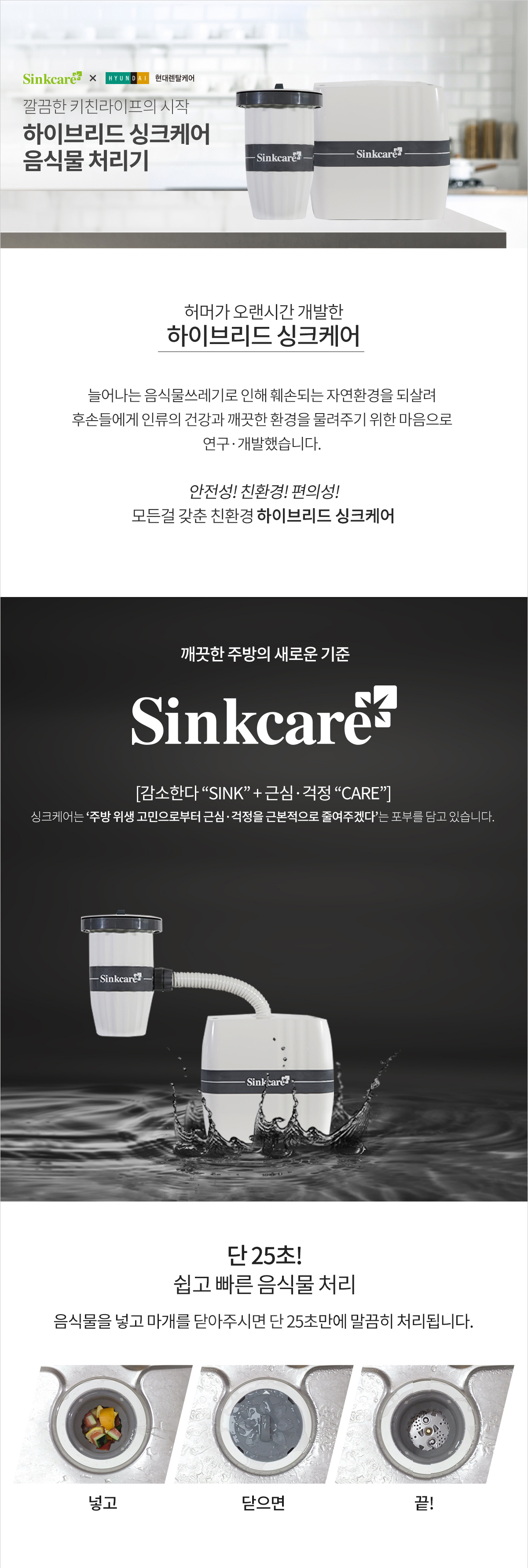 지금까지 경험하지 못한 극상의 편리함. 안전성ㆍ친환경ㆍ편의성을 모두 갖춘 싱크케어. 천연 미생물로 분해하여
